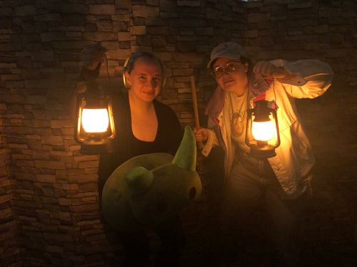 Because this project was apart of our senior capstone, along with creating the project. We presented it at our Grad Show, where anyone could show up and have a rundown of our entire project. As well as where we were showcasing the first build of our playable demo. Kris and I created an immsersive booth to visitors the feeling of being in a dungeon and experiecing the atmopshere of the enivornment.